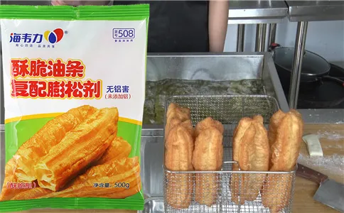 酥脆油条膨松剂是海韦力新研发的无铝油条膨松剂,酥脆油条膨松剂的特性和明矾一样,不会增加油条的筋度,炸的油条口感酥脆,而且还不含铝。